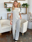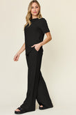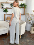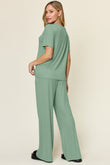 Double Take Full Size Round Neck Short Sleeve T-Shirt and Wide Leg Pants Set