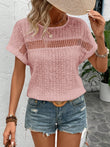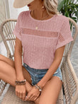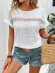 This Eyelet Round Neck Short Sleeve Top combines delicate eyelet detailing with a comfortable round neckline and breathable short sleeves. Perfect for warm days, it offers a light, airy feel while maintaining a stylish, feminine look. Ideal for casual outings or layering, this top supports your need for both comfort and effortless elegance.