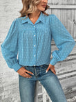 Full Size Swiss Dot Collared Neck Long Sleeve Shirt