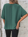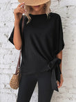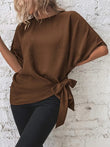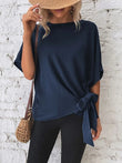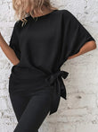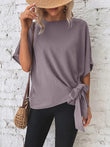 This knotted round neck blouse features half sleeves for a comfortable, stylish fit. Its unique knot detail adds a touch of elegance, making it perfect for both casual and dressy occasions. Designed to complement your wardrobe effortlessly, this blouse offers a flattering silhouette while keeping you comfortable throughout the day.