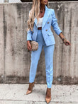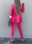 Lapel Collar Long Sleeve Blazer and Pants Set