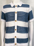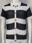 Men's Button Down Collared Neck Contrast Openwork Shirt