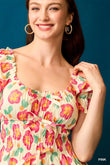 This floral smocked peplum blouse features a feminine and flattering silhouette. The smocked detailing adds texture and dimension to the design. Perfect for pairing with jeans or skirts, this blouse is versatile for various looks. Elevate your wardrobe with this trendy floral smocked peplum blouse for a stylish and chic outfit.