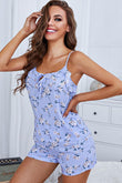 Indulge in sweet dreams with our Floral Tied Cami and Shorts Pajama Set! This set features a delicate floral print, a tied camisole, and matching shorts for a stylish and comfortable bedtime outfit. The soft material will keep you cozy all night long. Sleep in style and comfort with this must-have set!