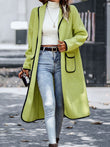 Full Size Contrast Trim Long Sleeve Coat with Pockets