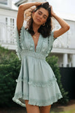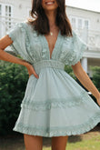 Unleash your inner confidence with our Lace Detail Plunge Short Sleeve Mini Dress. Elegant lace detailing and a flattering plunge neckline make this dress perfect for any occasion. Embrace your femininity and stand out from the crowd in this must-have dress!