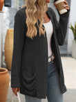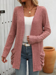 Open Front Long Sleeve Pocketed Ribbed Cardigan