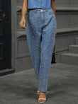 Pearl Detail Straight Jeans with Pockets