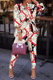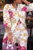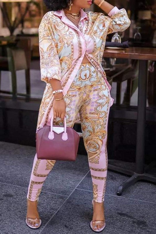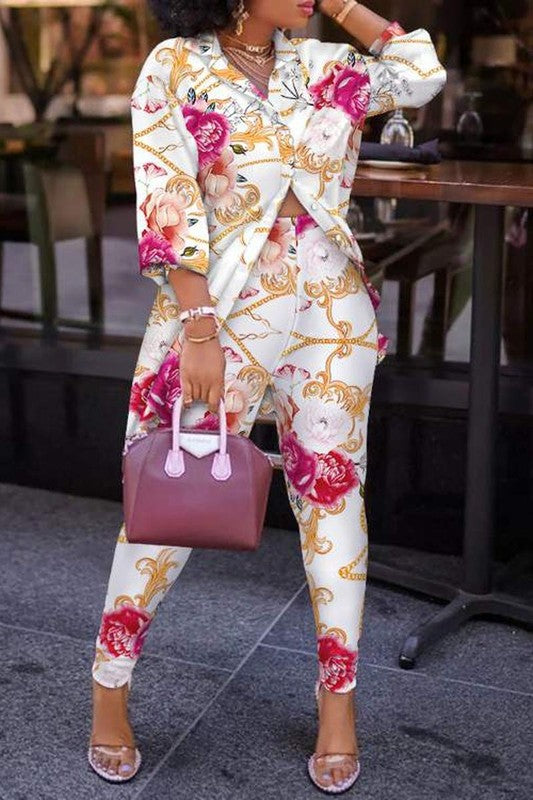 This graphic print high waist pants set is perfect for the classy stylish woman. Paired with the right shoes and accessories you are guaranteed to get compliments. Made with polyester, the entire outfit will give you style and comfort all while complimenting your curves.