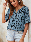 Experience effortless style with our Printed Notched Neck Half Sleeve Blouse! With a unique notched neckline and flattering half sleeves, this blouse is perfect for any occasion. The eye-catching print adds a touch of personality, while the lightweight and comfortable fabric ensures all-day wear. Elevate your wardrobe with this must-have piece!