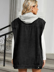 Removable Hood Button Up Cap Sleeve Denim Jacket