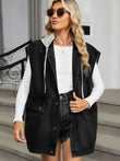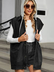 This versatile denim jacket features a removable hood and button-up design, making it the perfect go-to for any weather. Dress it up or down, this jacket will add a touch of style to any outfit. Say goodbye to boring outerwear and hello to endless outfit possibilities with our Removable Hood Button Up Cap Sleeve Denim Jacket.