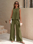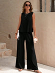 Round Neck Sleeveless Top and Wide Leg Pants Set
