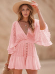 Indulge your feminine side in our Ruffle Hem Tie Back Lace Mini Dress. The delicate lace and ruffle hem add elegance to this must-have piece. The tie back detail creates a flattering silhouette. Perfect for special occasions or a night out, this dress will make you feel confident and beautiful.