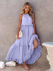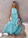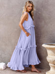 Ruffled Sleeveless Tiered Maxi Dress with Pockets
