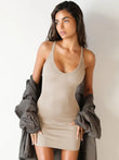 Experience comfort and style in our Scoop Neck Wide Strap Mini Dress. The scoop neck and wide straps provide a flattering fit and the mini length adds a touch of playful charm. Perfect for any occasion. Look and feel your best with this must-have dress!