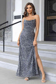 Sequin Backless Split Maxi Dress