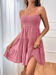 The Smocked Tiered Cami Dress offers a comfortable, flattering fit with its stretchy smocked bodice and flowing tiered skirt. Its adjustable cami straps provide a customizable feel, making it perfect for warm days or layering. This dress combines ease and style, supporting your confidence wherever you go.