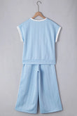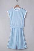 Elevate your wardrobe with our Textured Contrast Edge Top and High Waist Pants Set! Made with a unique textured design and contrasting edges, this set adds a touch of sophistication to any look. Plus, the high waist pants provide a comfortable and flattering fit. Upgrade your style game now!