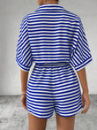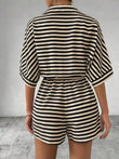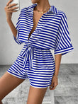 Tie Waist Half Button Striped Romper