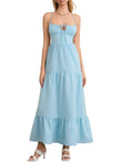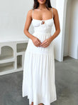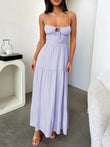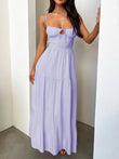 Tiered Lace Up Spaghetti Straps Maxi Dress