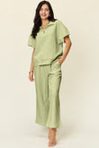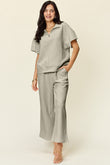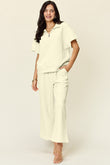 Double Take Full Size Texture Half Zip Short Sleeve Top and Pants Set