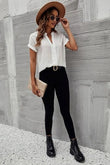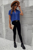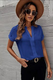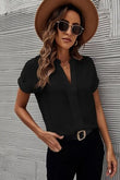 Elevate your wardrobe with our Full Size Notched Short Sleeve Blouse! Made with high-quality fabric, it features a notched neckline and short sleeves for a stylish and comfortable look. Perfect for any occasion, this blouse will effortlessly take you from day to night. Upgrade your style today!