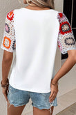 Geometric Round Neck Short Sleeve Blouse