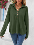 Stay comfortable and confident in the Half Button Collared Neck Long Sleeve Top. Designed with a thoughtful half-button front and a classic collar, this top offers both ease and style for your busy days. The long sleeves provide gentle coverage, making it a reliable choice that supports you from morning meetings to evening plans.