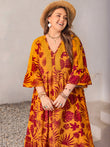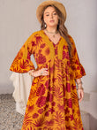 Plus Size Lace Detail Printed V-Neck Maxi Dress
