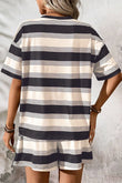 Stripe Half Sleeve T-Shirt and High Waist Pocketed Shorts Set