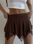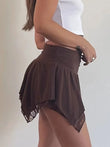 Lace Trim Asymmetrical Ruffle Mini Skirt