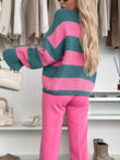 This Color Block Striped V-Neck Button Front Cardigan offers a stylish way to stay cozy. Its vibrant stripes add a fresh, modern touch, while the V-neck and button front provide easy layering options. Perfect for cooler days, this cardigan combines comfort with a flattering fit to support your everyday wardrobe needs.