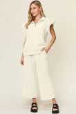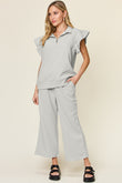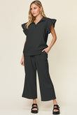 Double Take Texture Ruffle Short Sleeve Top and Drawstring Wide Leg Pants Set
