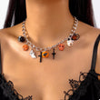 Celebrate the spooky season with our Halloween Charm Chain Necklace. Featuring an array of festive charms like pumpkins, bats, and ghosts, this necklace adds a playful yet eerie touch to your outfit. Perfect for Halloween parties or everyday wear during October, its lightweight chain ensures comfort while showcasing your holiday spirit. Embrace the magic of Halloween and let this necklace be your go-to accessory this fall.