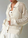 Hollow Out Knit Button Front Cardigan