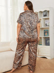 Plus Size Leopard Short Sleeve Top and Pants Lounge Set