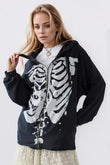 Skeleton Zip Up Drawstring Hoodie