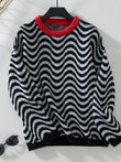 Elevate your everyday wardrobe with this captivating wavy striped round neck sweater. The dynamic wave pattern adds visual interest and dimension, while the classic round neckline keeps the look timeless and versatile. Perfect for layering or wearing solo, this piece transitions seamlessly from casual weekends to polished office settings. The soft, comfortable knit fabric ensures you'll reach for it again and again. Whether paired with jeans, trousers, or skirts, this sweater becomes an instant favorite that works harder than you'd expect.