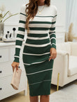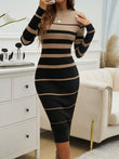 Devine Color Block Round Neck Long Sleeve Midi Dress