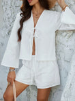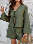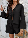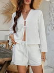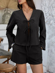 Conquer your next adventure in our Devine Double Tied V-Neck Top and Shorts Set! With its bold v-neck and double tied design, you'll feel confident and ready to take on any challenge. Made for those who love to take risks, this set is the perfect combination of style and adventure.