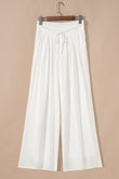 These flowy wide leg pants feature a comfortable drawstring waist, allowing for an adjustable fit that enhances ease of wear. Crafted to provide a relaxed silhouette, they offer excellent breathability and freedom of movement, making them ideal for both casual and refined looks. The lightweight fabric drapes elegantly, combining style with comfort for versatile wardrobe options.