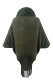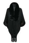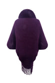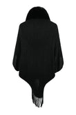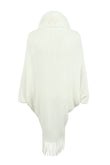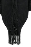 Fringe Detail Long Sleeve Ribbed Poncho