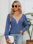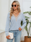 Elevate your everyday look with this Lace Detail V-Neck Ribbed Blouse. The delicate lace trim adds a flirty touch, while the ribbed fabric hugs your curves comfortably. Perfect for mixing and matching, it brings a playful charm to any outfit, whether you're dressing up or keeping it casual.