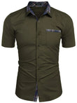 This expertly crafted men's button-up short sleeve shirt combines precision tailoring with functional design. The structured collar maintains its shape throughout the day, while the breathable fabric ensures comfort in various conditions. Strategic seam placement creates a flattering silhouette that transitions seamlessly from professional settings to casual occasions.