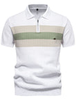 Elevate your casual wardrobe with our Men's Collared Neck Striped Texture Knit Polo. The classic collared neck and striped texture add a touch of sophistication, while the comfortable knit material ensures you look and feel your best all day. Make a statement with this timeless and stylish polo.