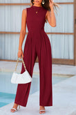 Mock Neck Sleeveless Wide Leg Jumpsuit