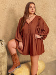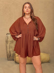 Elevate your style with our Plus Size Ruched Tie Neck Balloon Sleeve Romper! Featuring a flattering ruched design and elegant tie neck, this romper is perfect for any occasion. The balloon sleeves add a touch of whimsy, making you feel confident and stylish. Stand out in this statement piece!
