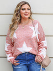 Plus Size Star Round Neck Long Sleeve Sweater