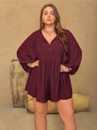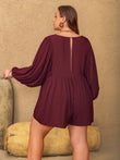 Elevate your style with our Plus Size Tie Neck Balloon Sleeve Romper! Featuring a tie neck and balloon sleeves, this romper is perfect for making a statement. The extra size ensures a comfortable and flattering fit for all body types. Upgrade your wardrobe with this unique and chic piece.